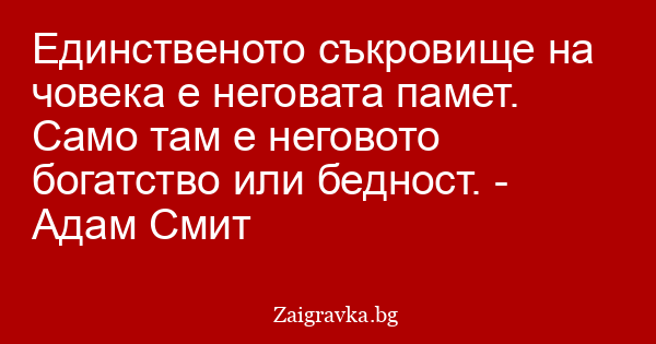 Единственото съкровище на човека е неговата памет. Само там е неговото богатство или бедност. - Адам Смит