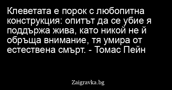 Клеветата е порок с любопитна конструкция: опитът да се убие я поддържа жива, като никой не й обръща внимание, тя умира от естествена смърт. - Томас Пейн