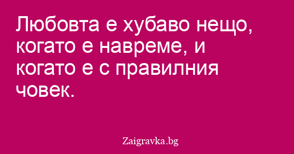 Любовта е хубаво нещо, когато е навреме, и когато е с правилния човек.