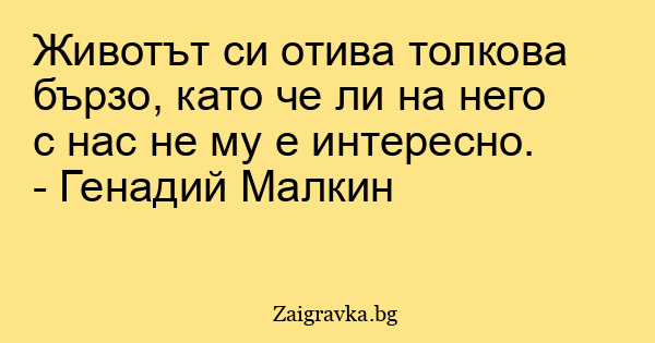 Животът си отива толкова бързо, като че ли на него с нас не му е интересно. - Генадий Малкин