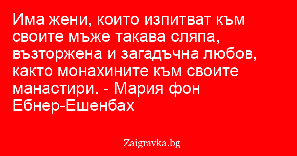 Има жени, които изпитват към своите мъже такава сляпа, възторжена и загадъчна любов, както монахините към своите манастири. - Мария фон Ебнер-Ешенбах