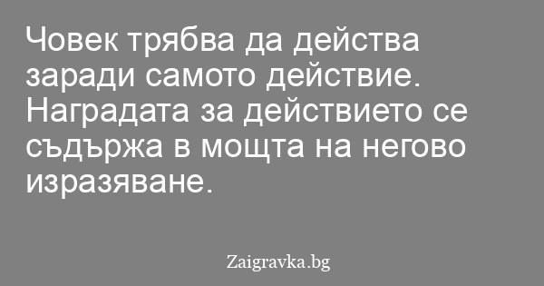 Човек трябва да действа заради самото действие. Наградата за действието се съдържа в мощта на негово изразяване.