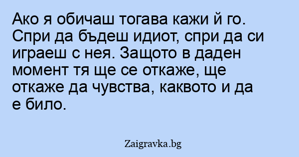 Ако я обичаш тогава кажи й го. Спри да бъдеш идиот, спри да си играеш с нея. Защото в даден момент тя ще се откаже, ще откаже да чувства, каквото и да е било.