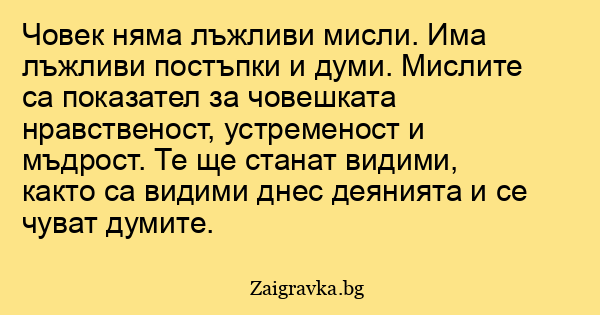 Човек няма лъжливи мисли. Има лъжливи постъпки и думи. Мислите са показател за човешката нравственост, устременост и мъдрост. Те ще станат видими, както са видими днес деянията и се чуват думите.