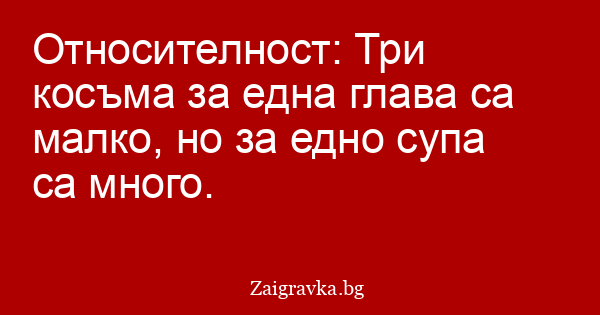 Относителност: Три косъма за една глава са малко, но за едно супа са много.