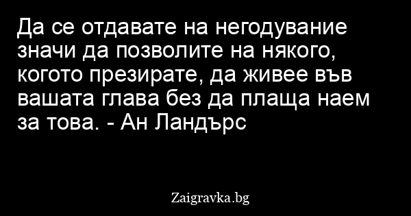 Да се отдавате на негодувание значи да позволите на някого, когото презирате, да живее във вашата глава без да плаща наем за това. - Ан Ландърс