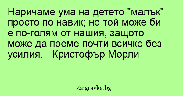 Наричаме ума на детето "малък" просто по навик; но той може би е по-голям от нашия, защото може да поеме почти всичко без усилия. - Кристофър Морли