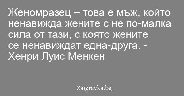 Женомразец – това е мъж, който ненавижда жените с не по-малка сила от тази, с която жените се ненавиждат една-друга. - Хенри Луис Менкен