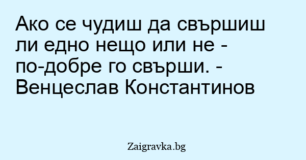 Ако се чудиш да свършиш ли едно нещо или не - по-добре го свърши. - Венцеслав Константинов