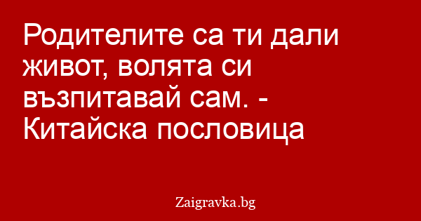 Родителите са ти дали живот, волята си възпитавай сам. - Китайска пословица