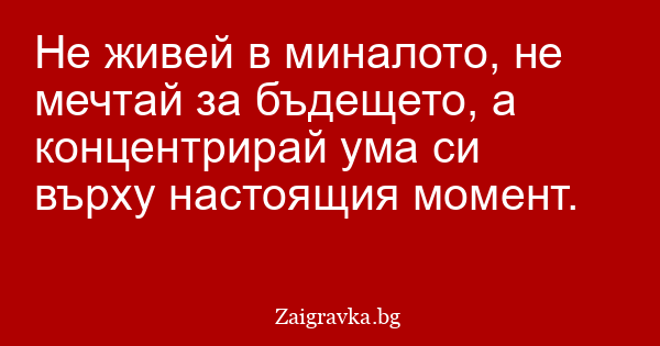 Не живей в миналото, не мечтай за бъдещето, а концентрирай ума си върху настоящия момент.