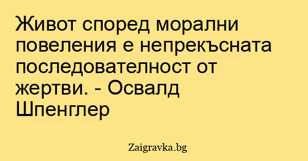 Живот според морални повеления е непрекъсната последователност от жертви. - Освалд Шпенглер