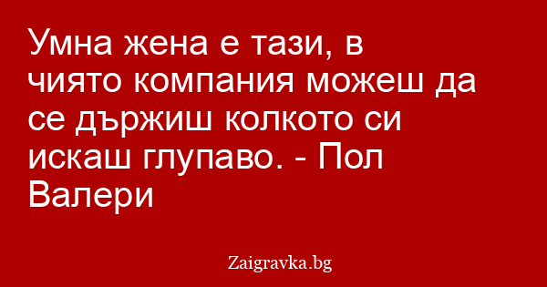 Умна жена е тази, в чиято компания можеш да се държиш колкото си искаш глупаво. - Пол Валери