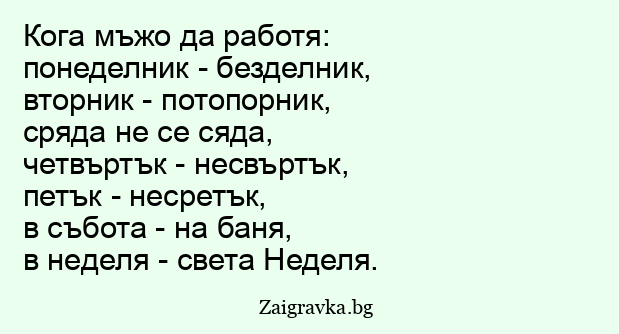 понеделник - безделник,