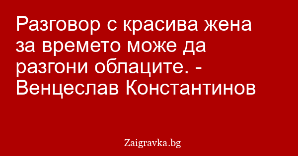 Разговор с красива жена за времето може да разгони облаците. - Венцеслав Константинов