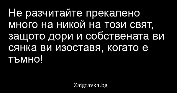 Не разчитайте прекалено много на никой на този свят, защото дори и собствената ви сянка ви изоставя, когато е тъмно!