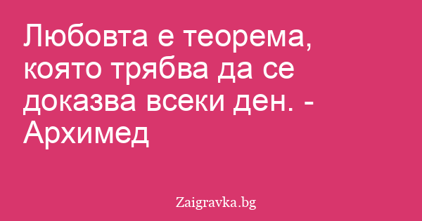 Любовта е теорема, която трябва да се доказва всеки ден. - Архимед