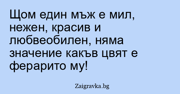 Щом един мъж е мил, нежен, красив и любвеобилен, няма значение какъв цвят е ферарито му!