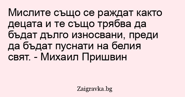 Мислите също се раждат както децата и те също трябва да бъдат дълго износвани, преди да бъдат пуснати на белия свят. - Михаил Пришвин