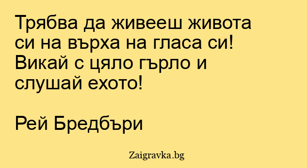Трябва да живееш живота си на върха на гласа си! Викай с цяло гърло и слушай ехото!