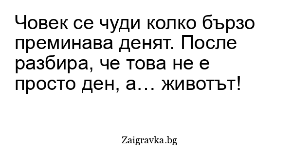 Човек се чуди колко бързо преминава денят. После разбира, че това не е просто ден, а… животът!