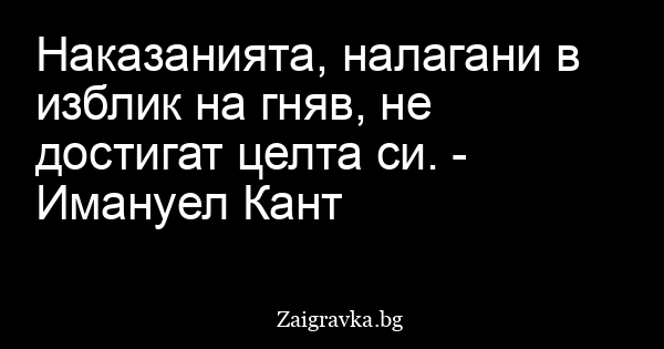 Наказанията, налагани в изблик на гняв, не достигат целта си. - Имануел Кант