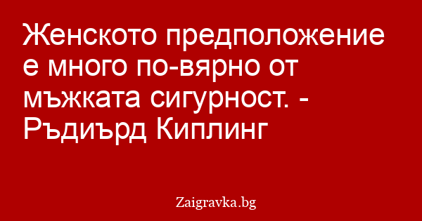 Женското предположение е много по-вярно от мъжката сигурност. - Ръдиърд Киплинг