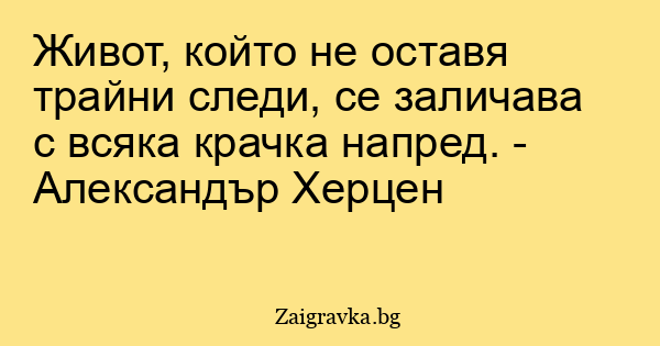 Живот, който не оставя трайни следи, се заличава с всяка крачка напред. - Александър Херцен