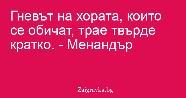 Гневът на хората, които се обичат, трае твърде кратко. - Менандър