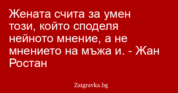 Жената счита за умен този, който споделя нейното мнение, а не мнението на мъжа и. - Жан Ростан