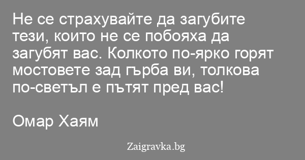 Не се страхувайте да загубите тези, които не се побояха да загубят вас. Колкото по-ярко горят мостовете зад гърба ви, толкова по-светъл е пътят пред вас!