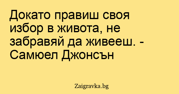 Докато правиш своя избор в живота, не забравяй да живееш. - Самюел Джонсън