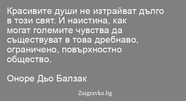 Красивите души не изтрайват дълго в този свят. И наистина, как могат големите чувства да съществуват в това дребнаво, ограничено, повърхностно общество.
