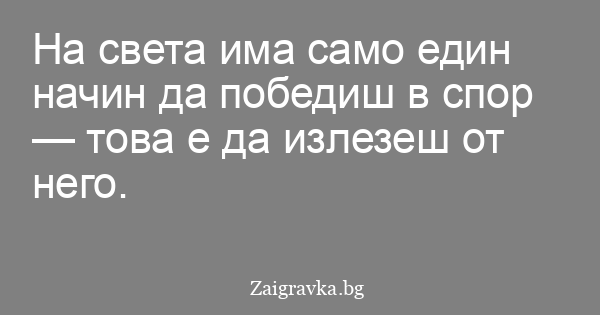 На света има само един начин да победиш в спор — това е да излезеш от него.
