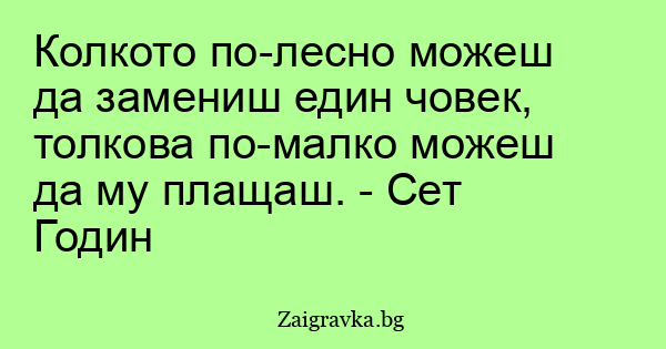 Колкото по-лесно можеш да замениш един човек, толкова по-малко можеш да му плащаш. - Сет Годин