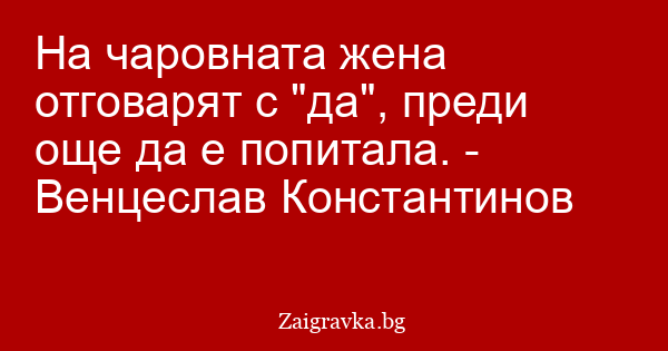 На чаровната жена отговарят с "да", преди още да е попитала. - Венцеслав Константинов