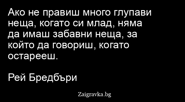 Ако не правиш много глупави неща, когато си млад, няма да имаш забавни неща, за който да говориш, когато остарееш.