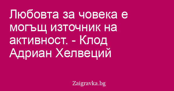 Любовта за човека е могъщ източник на активност. - Клод Адриан Хелвеций