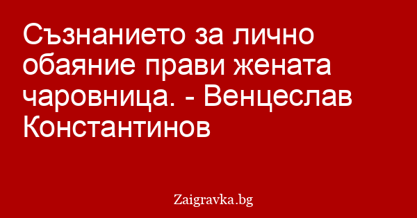 Съзнанието за лично обаяние прави жената чаровница. - Венцеслав Константинов