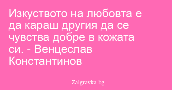 Изкуството на любовта е да караш другия да се чувства добре в кожата си. - Венцеслав Константинов