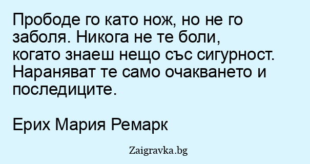 Прободе го като нож, но не го заболя. Никога не те боли, когато знаеш нещо със сигурност. Нараняват те само очакването и последиците.