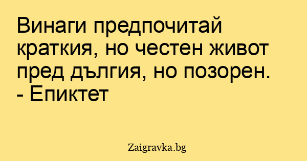 Винаги предпочитай краткия, но честен живот пред дългия, но позорен. - Епиктет