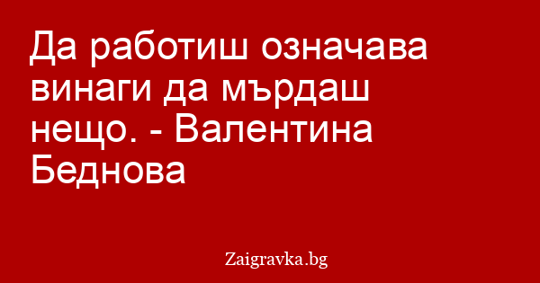 Да работиш означава винаги да мърдаш нещо. - Валентина Беднова