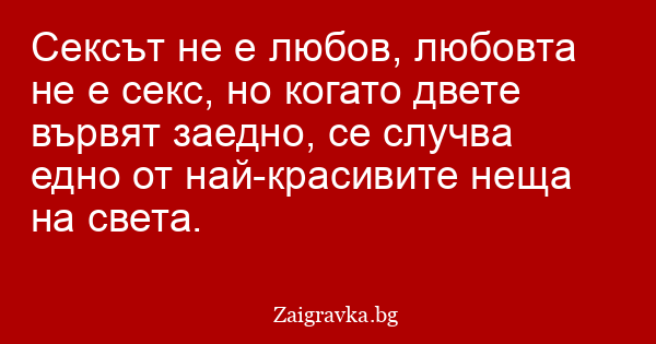 Сексът не е любов, любовта не е секс, но когато двете вървят заедно, се случва едно от най-красивите неща на света.