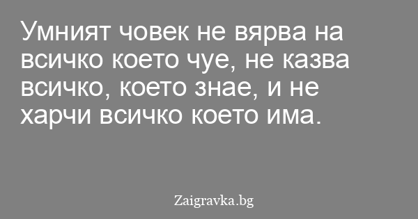 Умният човек не вярва на всичко което чуе, не казва всичко, което знае, и не харчи всичко което има.