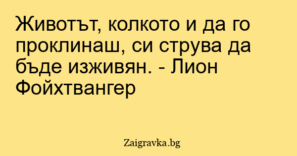 Животът, колкото и да го проклинаш, си струва да бъде изживян. - Лион Фойхтвангер
