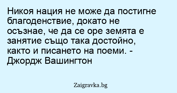 Никоя нация не може да постигне благоденствие, докато не осъзнае, че да се оре земята е занятие също така достойно, както и писането на поеми. - Джордж Вашингтон