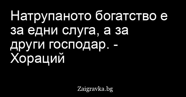 Натрупаното богатство е за едни слуга, а за други господар. - Хораций
