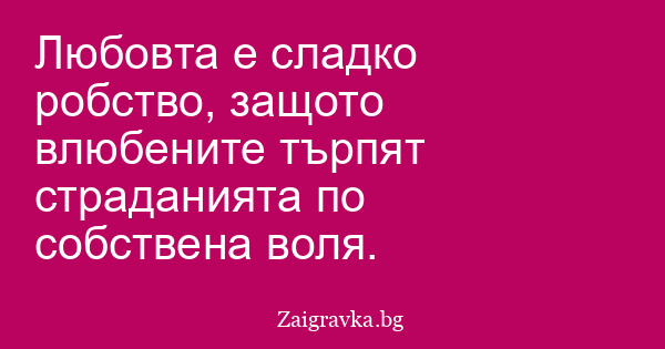 Любовта е сладко робство, защото влюбените търпят страданията по собствена воля.