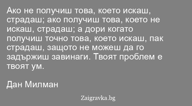 Ако не получиш това, което искаш, страдаш; ако получиш това, което не искаш, страдаш; а дори когато получиш точно това, което искаш, пак страдаш, защото не можеш да го задържиш завинаги. Твоят проблем е твоят ум.